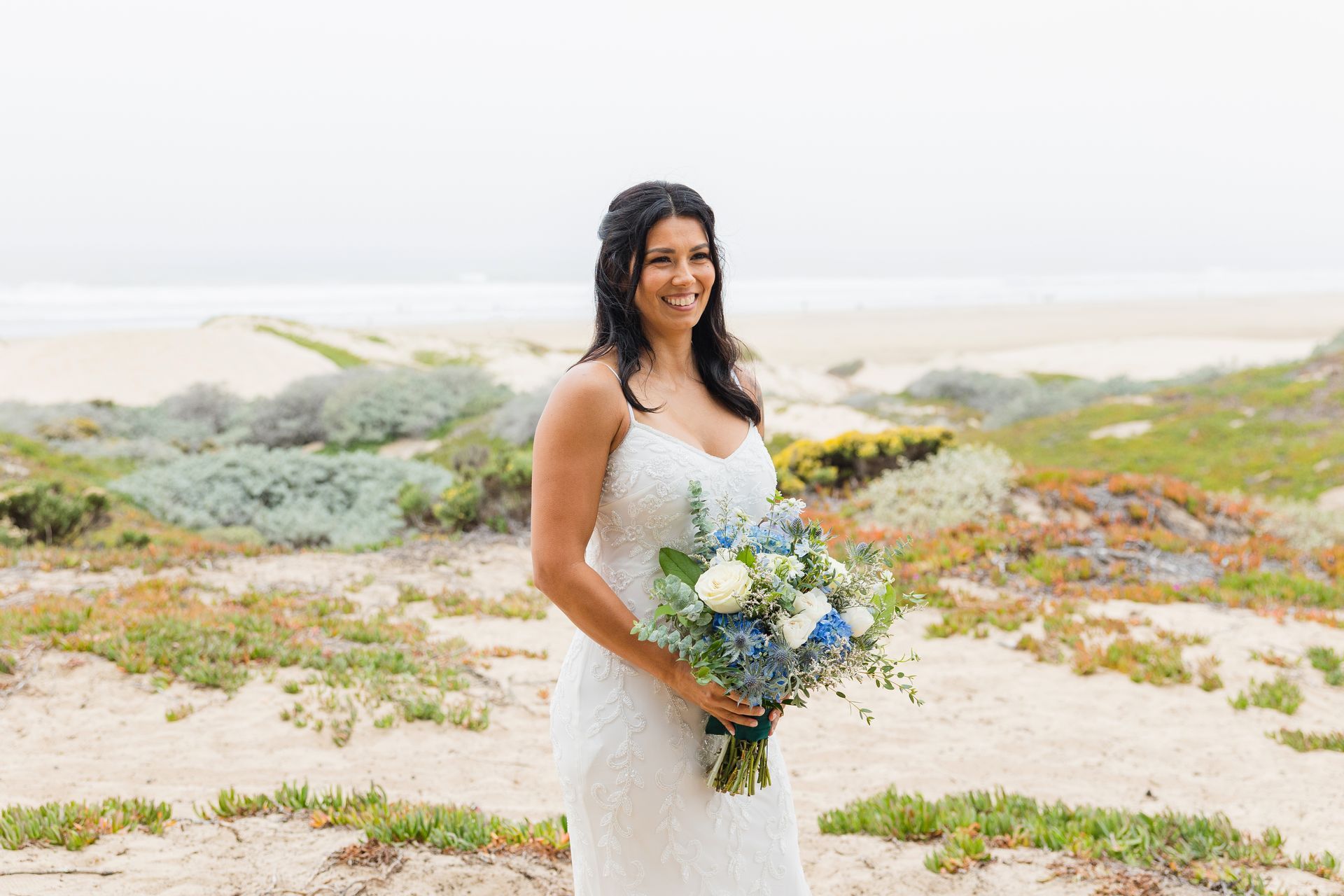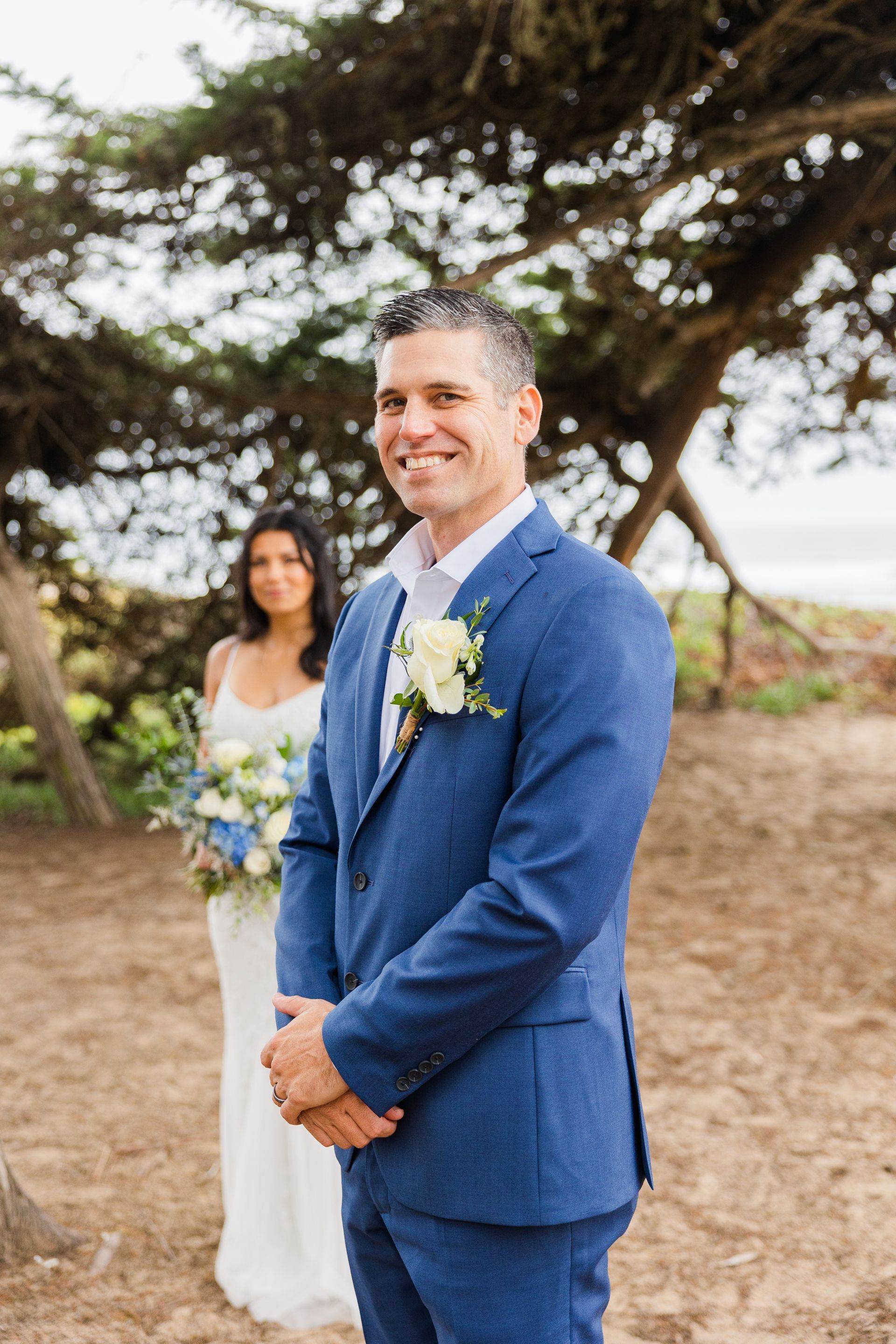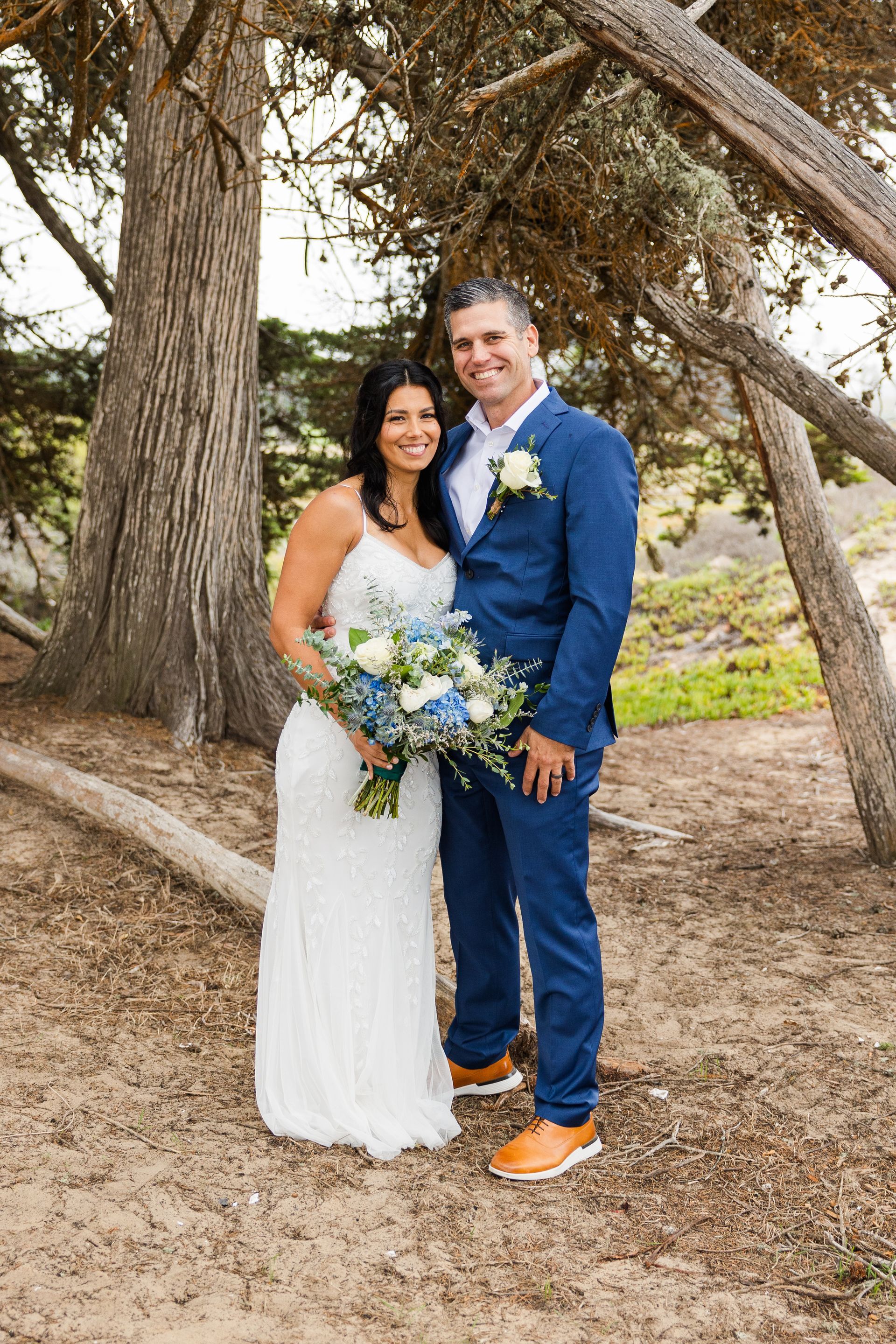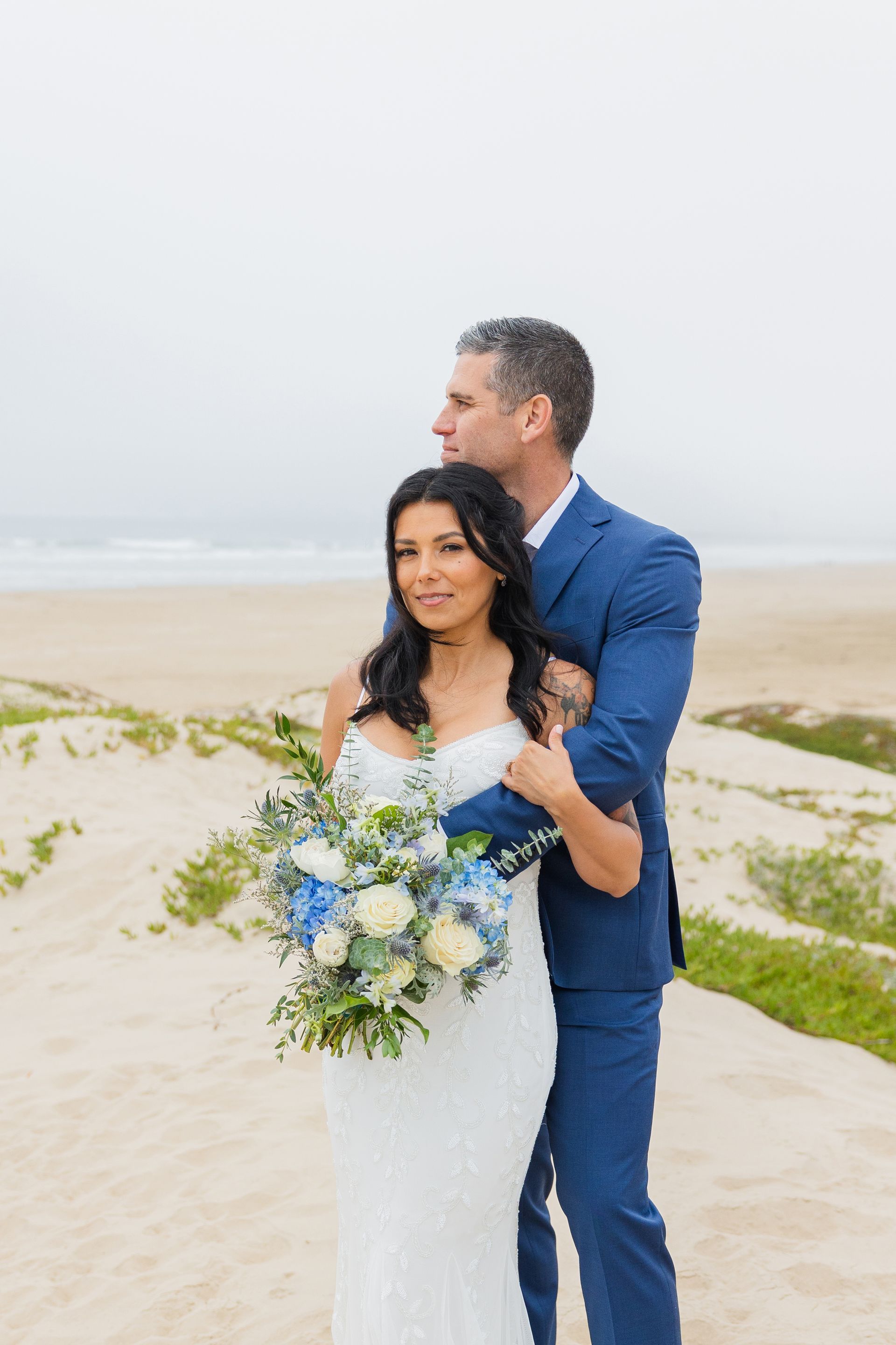 Here's one couple's story about how they found Pismo Beach for their small wedding - The couple had been looking for a venue for about 1 ½ years, when they discovered Coastal California Weddings on the internet. After looking at the website and the pictures of the beautiful Central Coast, they knew they had found their special place. So, they traveled from Redding, CA to seal their love and take their vows. This wedding took place at Pismo Beach, on the sand, surrounded by tidepools and gentle waves. I am sure the couple will return often to their special place, and re-live the joy of this day. Surrounded by family and friends, many wearing blue attire, the couple had their perfect “toes in the sand” small wedding Pismo Beach.